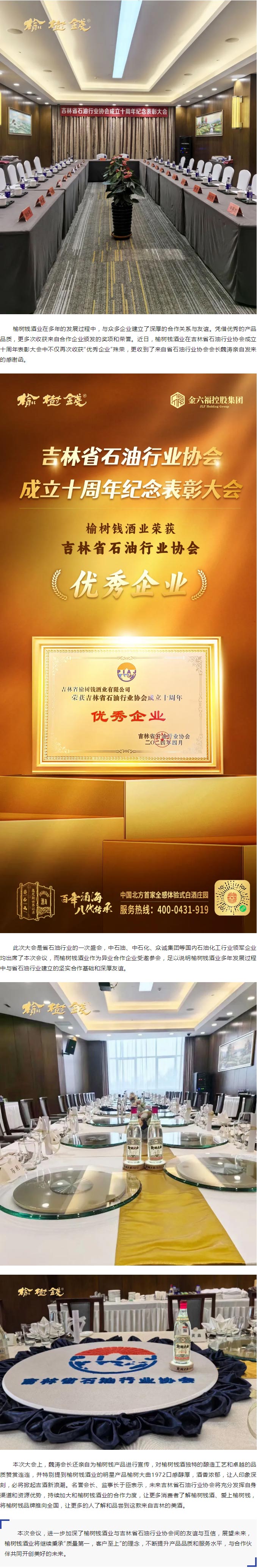 合作共贏 共創(chuàng)未來|榆樹錢酒業(yè)獲吉林省石油行業(yè)協(xié)會(huì)頒發(fā)******企業(yè)獎(jiǎng)項(xiàng)及感謝函